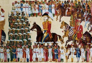 Such is the dazzle of these treasures that, as a visitor last summer, I nearly missed the huge framed canvas that explains how they came to be here. The picture hangs in the shadows at the top of a dark, oak-panelled staircase. It is not a masterpiece, but it does repay close study. An effete Indian prince, wearing cloth of gold, sits high on his throne under a silken canopy. On his left stand scimitar and spear carrying officers from his own army; to his right, a group of powdered and periwigged Georgian gentlemen. The prince is eagerly thrusting a scroll into the hands of a statesmanlike, slightly overweight Englishman in a red frock coat.